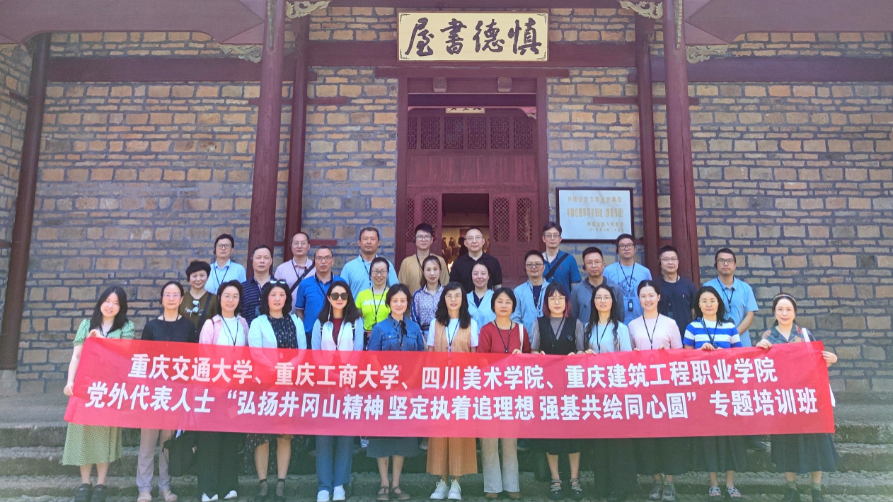 为深入学习贯彻落实中国共产党的二十大精神和习近平总书记视察重庆时的重要指示精神,持续巩固“凝心铸魂强根基,团结奋进新征程”主题教育成果,落实上级有关支持各民主党派、无党派人士开展纪律学习教育工作要求,进一步加强党外代表人士队伍建设,在学校党委和行政的关心支持下,7月9日至14日,我校联合重庆交通大学、四川美术学院、重庆建筑工程职业学院在井冈山市委党校开展了党外代表人士“弘扬井冈山精神 坚定执着追理想 强基共绘同心圆”专题培训班。来自四所高校的36名民主党派基层组织、统战团体领导班子成员,党外优秀年轻干部及统战干部参加了培训,我校选派14名学员参训。