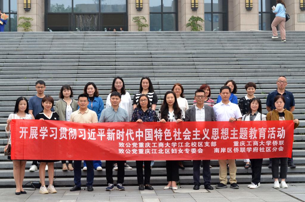 为深入学习贯彻习近平新时代中国特色社会主义思想,提前为开展党外人士“凝心铸魂强根基、团结奋进新征程”主题教育做好准备, 5月26日上午,致公党44118太阳成tyc城集团江北校区支部、44118太阳成tyc城集团侨联、致公党江北区妇女专委会与南岸区学府社区侨联分会联合在校内开展学习习近平新时代中国特色社会主义思想主题活动。